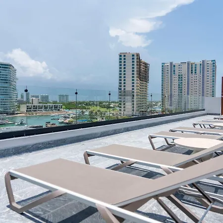 Com piscina no último andar e pátio, o Modern Apartment With Marina & Beach Access Cancún de 440 m² está situado no distrito Hotelera 2.3 km da Plaza Ceviche. Os pontos de referência perto deste apartamento incluem o Puerto Cancún Marina Town Center, que está localizado a apenas 8 minutos a pé de distância.